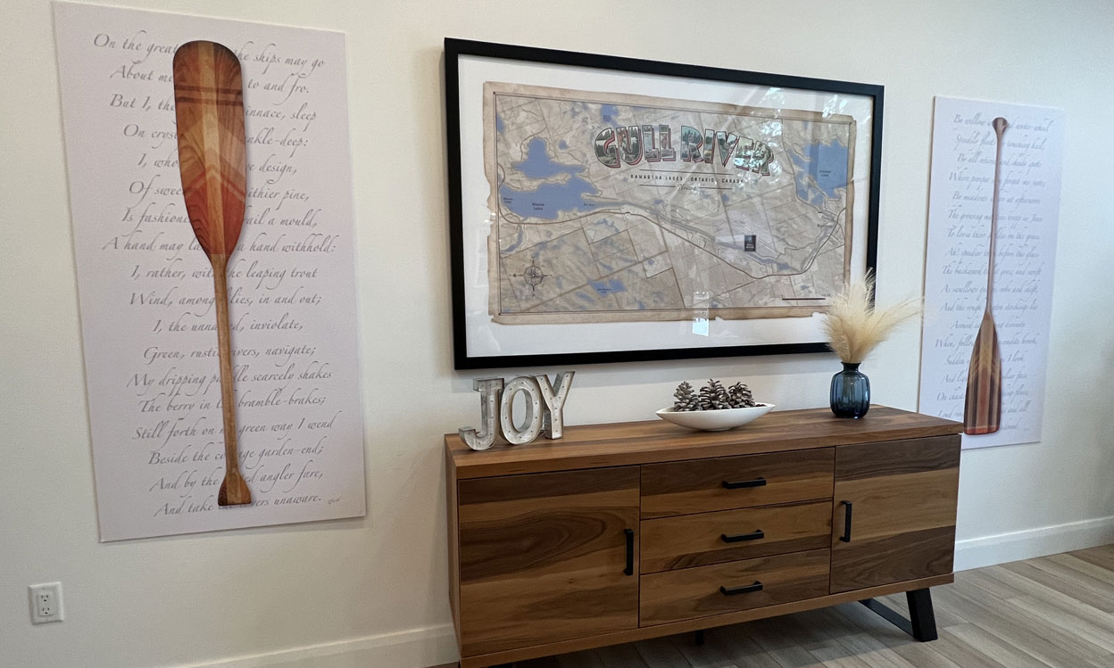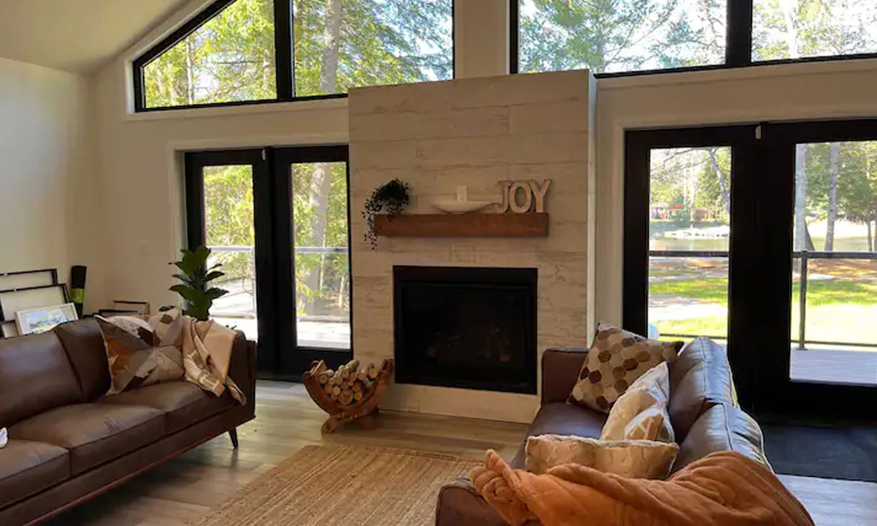 Enjoy the scenic views of the woodlands and Gull River, take in the spectacular fall colours in autumn, cozy up to the indoor gas fireplace during winter in the heart of cottage country!
